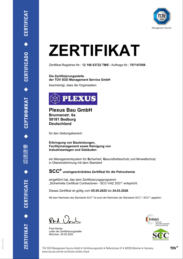 Arbeitssicherheit SCC ℗ steht für Safety Certificate Contractors und bezeichnet einen internationalen Standard zu den Themen Sicherheit, Gesundheits- und Umweltschutz.